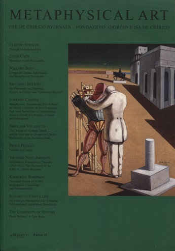 “Metaphysical Art – The de Chirico Journals” is a periodical dedicated to recent scholarship on Giorgio de Chirico’s art published in English and in Italian. Established in 2002, the periodical includes essays by internationally recognised academics as well as a new generation of researchers belonging to different fields of expertise. The publication deals with various areas of research ranging from historical and technical analyses of the Maestro’s artwork and literary production to exhibition critique and includes a significant number of previously unpublished historical documents.