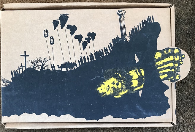 Cardboard box, 25 x 35.5 cm, with printed cover and written on sides. Inside the paper wrapping, 89.5x62.2 cm folded in 30 x 21 cm with screen printing paint of the ancient walls of Palermo on one side and on the other an artist's text in large letters and imprint. The poster is pasted only to the inner rear side of the corrugated cardboard cover. Excellent condition. Enzo Cucchi - Sicily E 'ARTIST, Selection, Reggia di Caserta Catalogus van de expositie, opgesteld door Mario Codognato en Paolo Falcone, Reggia di Caserta, 1994. Co-uitgave van: Cesare Manzo Editions, Pescara; Editions Emilio Mazzoli, Modena; Law Office Editions, Caserta. Oplage catalogus: 2000 stuks