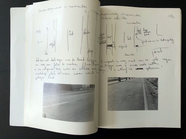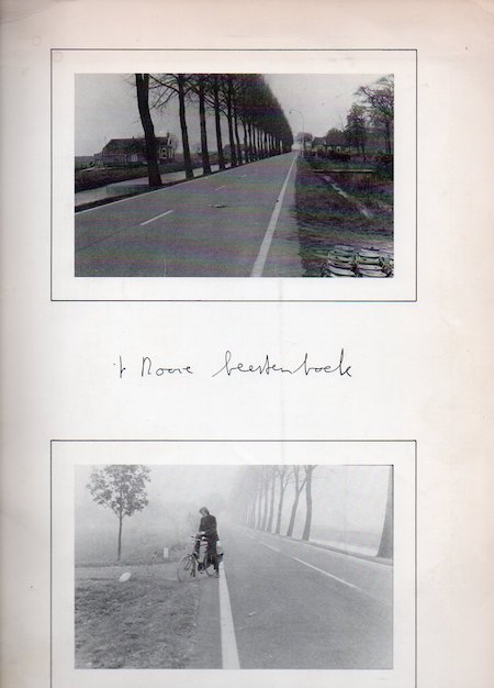 Documentated in this artist's book. Meticulously ( with photographs and situation drawings all animals (most domestic) that are killed by cars on 'Hoofdstraat 45, the road between Beerta and Winschoten in province of Groningen, Netherlands. Enclosed the English translation of the Dutch text: What I am doing and have been doing + large leaflet of (6) pp. with illustrations written by Jan Donia titled: The position of Hans de Vries, (6) pp. with illustrationsuyl. *Hans de Vries kept a diary for almost a year to make notes of all the animals wich were killed by traffic in Beerta (Netherlands). . *Although not trained as an artist, De Vries, self-designated as an artist, participated in 1971 in some high profile exhibitions like Sonsbeek Buiten de Perken (Sonsbeek Beyond the Pale), Park Sonsbeek, Arnhem (NL) and Binnen en Buiten het Kader (Inside and Beyond the Frame), Stedelijk Museum Amsterdam (NL).