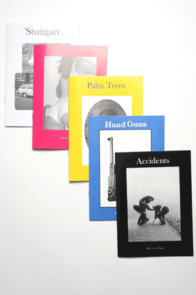 Publisher: 4478zine Year: 2009 Artist: WEIJDE~Erik van der First edition, 112 pages (total), 15x21 cm, offset printed in Brazil Condition: as new Contains different issues, with different series of collected images: #Palm Trees, #Hand Guns, #(the pink issue), #Accidents, #the Stuttgart Issue. #Accidents published in collaboration with Concrete Matter #the Stuttgart Issue published in collaboration with Self Service