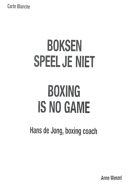In February 2019 Deirdre Carasso, director of the Stedelijk Museum Schiedam, invited the artist Anne Wenzel to enter a boxing ring in the museum, pitting the autonomy of art against the power of cultural institutions. Wenzel, who had never boxed before, accepted the challenge on the condition that if she won, the museum would give her carte blanche. Wenzel won and took over the museum with the aim of putting art centre stage. This book, which documents the carte blanche episode, is both a manifesto for the autonomy of art and a reflection on the position of art and artists in the current institutionalized art world. Along with essays and visual documentation about the different aspects of the carte blanche episode, the book presents the body of work produced and presented by Wenzel at the Stedelijk Museum Schiedam.
